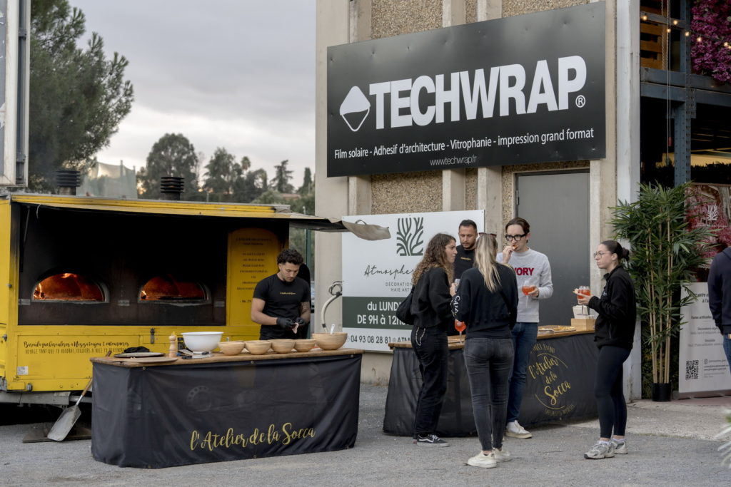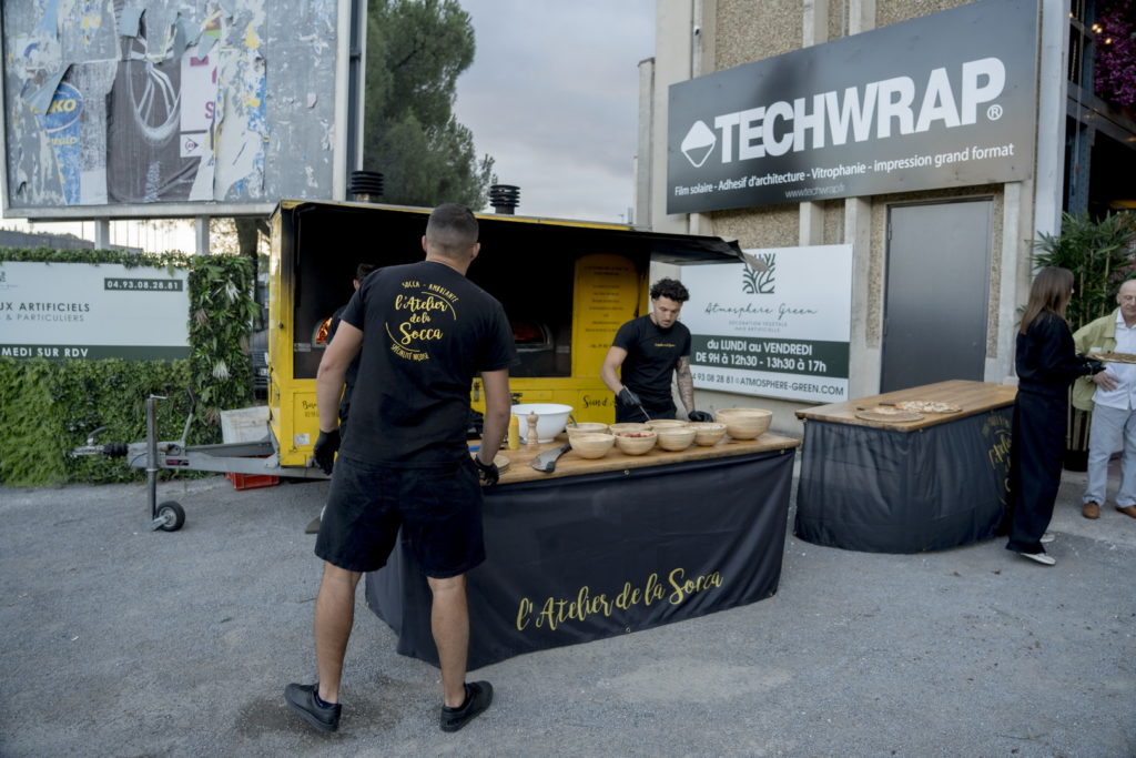 Un cocktail dînatoire offert par Atmosphère Green et animé par L’Atelier de la Socca, en présence de près de 150 personnes, dirigeants des enseignes de design et du bâtiment, ainsi que des architectes.